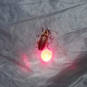 However, there was one insect that was attracted to the red light, lightning bugs. As they dive bombed my face, I gained a new appreciation for the species. They feature a bio-luminescent abdomen that creates a flash of yellow light, thanks to a chemical reaction. They use this light to find other fireflies for mating, males are most likely to be active while females sit and wait, laying their eggs on the ground.